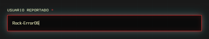 - Usuario Reportado: Escribe el nombre exacto (ID) del jugador.